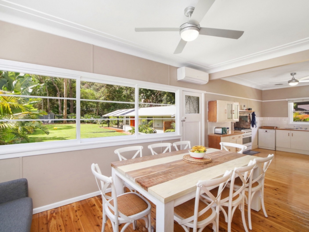 The Emerald is a vibrant, modern and stylish holiday home located in one of the most sought after streets in Pearl Beach. Featuring elegant and stylish furniture, a refurbished kitchen with new appliances, manicured gardens with a fully-fenced, pet-friendly backyard and a separate studio sleep-out for additional space, this property is going to be a family favourite catering to all. Only minutes walk to Pearl Beach town centre, pristine beaches and beautiful nature trails what more can you ask for! Master bedroom contains a queen bed and built-in robe. Bedroom 2 has a queen bed, single bunk bed, single trundle and free-standing wardrobe. Bedroom 3 is a separate studio sleep-out with a queen bed, 2 single beds, sofa lounge, TV, air-conditioning and attached laundry with shower and toilet.
