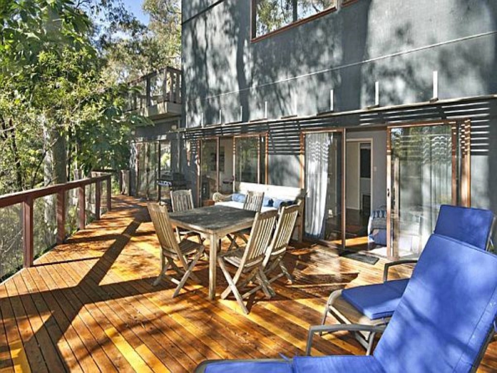 The Deck House, is a fitting name for this picturesque holiday property is nestled amongst the natural bushland and unspoiled beauty that Pearl Beach offers. Set in a sleepy fishing town, this large holiday home consists of two separate fully self-contained living quarters perfect for large or extended families seeking a holiday together. The Deck House features three bedrooms downstairs and two upstairs, both with fully equipped kitchens, multiple living spaces and full internal laundry. Soak up the sunshine from its timber decks and enjoy the natural surrounds. The Deck House is beautifully designed and furnished throughout with spacious interiors and high ceilings that create additional space and emanates a homely feel. Surrounded by the peaceful and tranquil bushland views, this property is still only 300 metres to the beautiful beach, cafe, general store, playground and restaurant, and only a 7-minute drive to surrounding towns Umina Beach and Ettalong Beach, giving guests the best of both worlds.