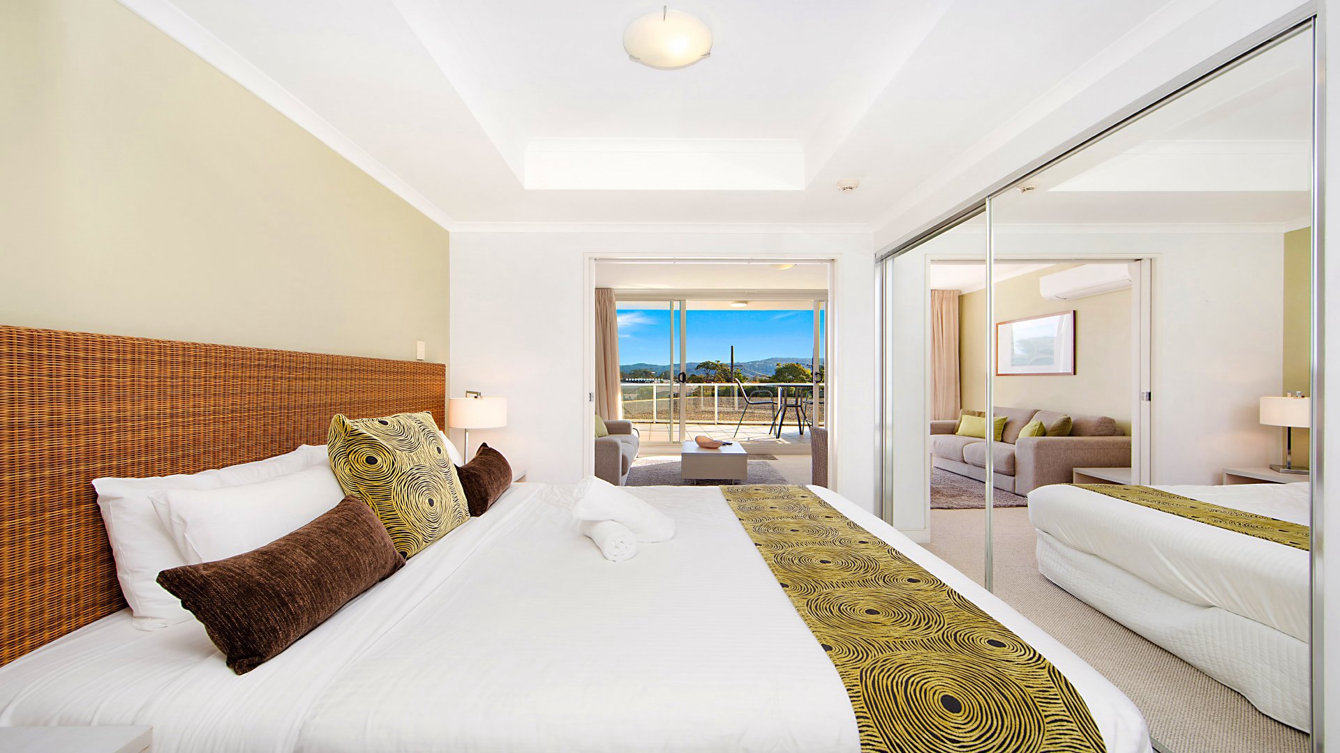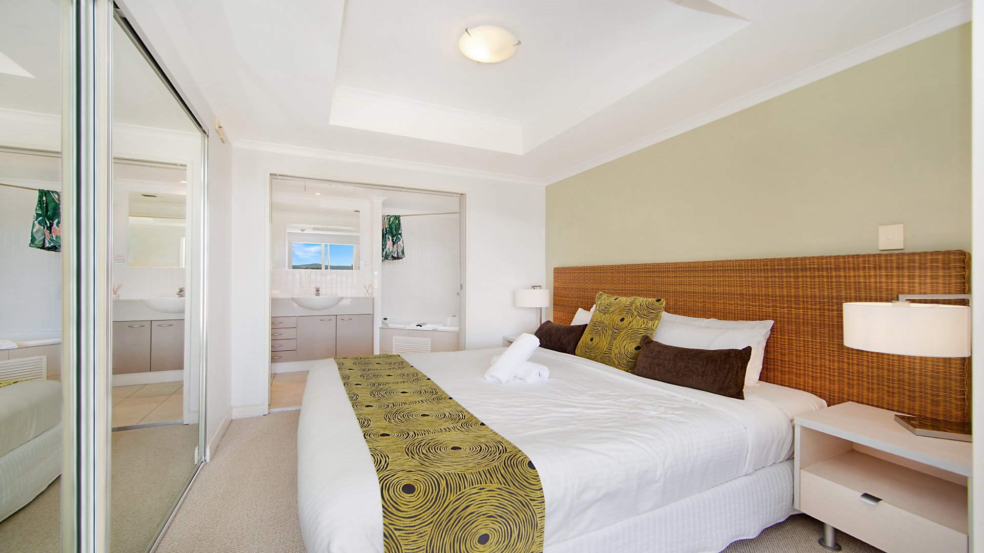 With access to surrounding un-spoilt beaches and secluded bays, the apartment overlooks the hinterland with glimpses of water views from the large balcony with many of the region's top attractions, only a short walk away including weekend markets, cinemas and ferry services. The apartment is fully furnished with a full range of modern facilities. The master bedroom has a king bed and double sofa in the living room.